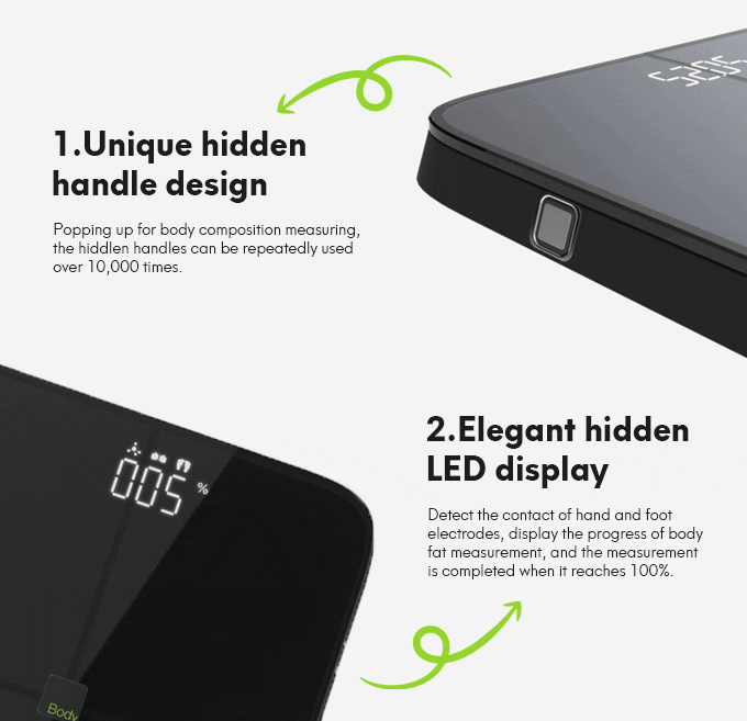 Thanks to the handles, BodyPedia Body Composition Scale direct analyzes your body on a segment-by-segment basis, providing ultra-precise measurements of your body composition.