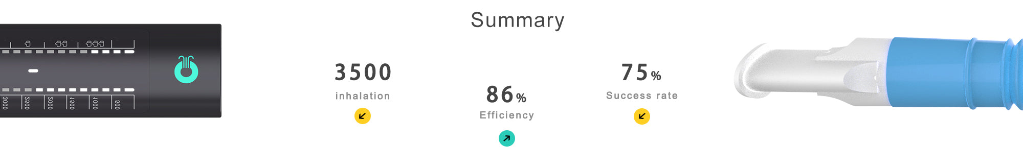 -OPUMP utilizes the cutting-edge MEMS thermal film flow sensor to detect inspiratory flow rate and volume in real-time, and give you the accurate IVC (Inspiratory Vital Capacity). IVC will be displayed on the product directly with LED lights, and can be tracked in the App.