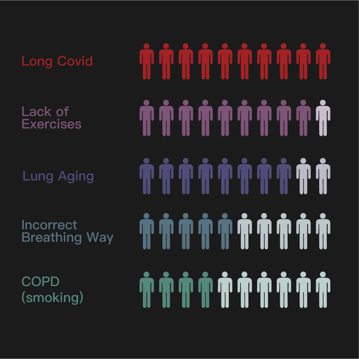 People with and without respiratory conditions will benefit from breathing training, as it help improve the endurance and strength of respiratory muscles, increase vital capacity and slow lung aging.